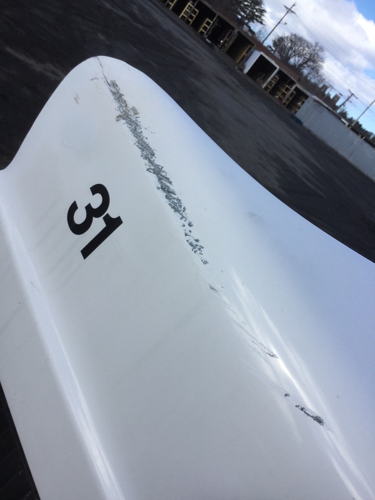 Used take off 2013 Mack CHU613 hood assembly. DAMAGED